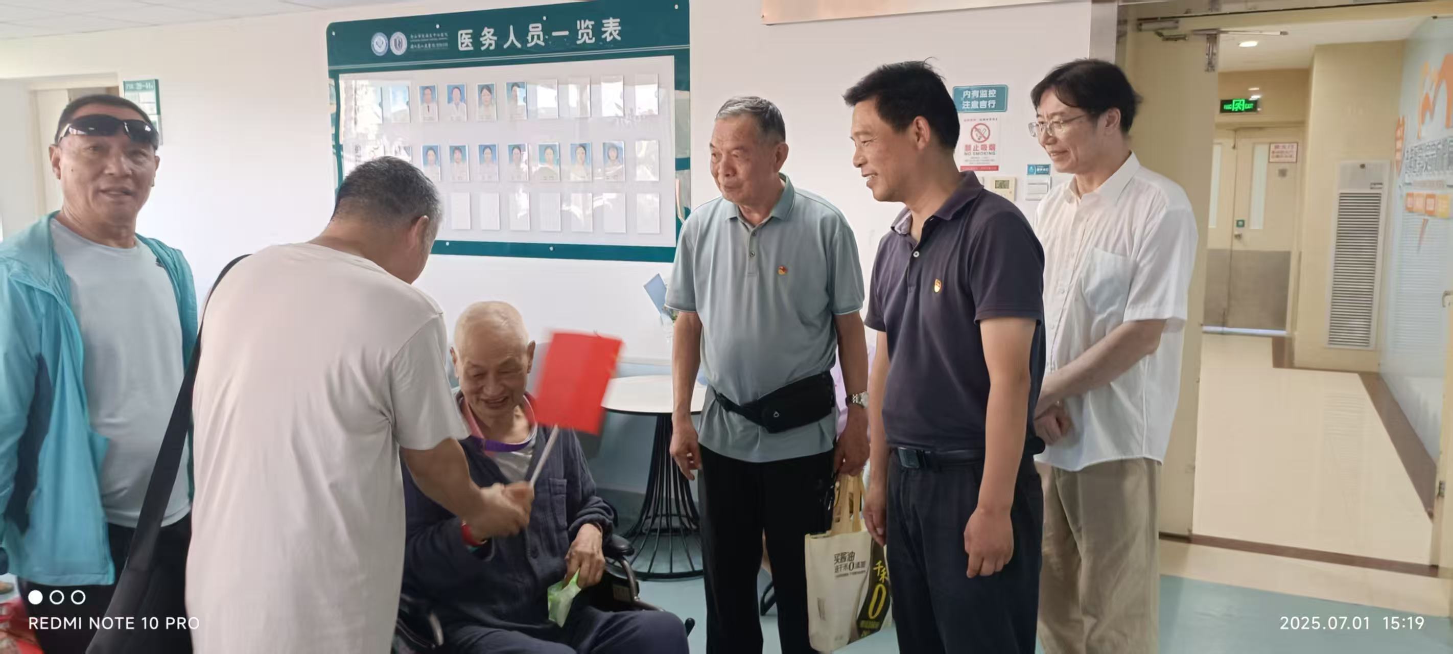 活动结束后,离退休党总支书记虞浩臣与第六党支部三位支委及石化北门片组长方阿明同志一同前往定海区中心医院,亲切看望了生病住院的老党员陈钟遂同志(87岁)。虞浩臣详细询问了陈钟遂同志的病情和治疗情况,为他送上了党组织的温暖与祝福,并叮嘱他安心养病,争取早日康复。陈钟遂同志及其家属对党组织的关怀表示衷心感谢,深切感受到了党组织的凝聚力和向心力。